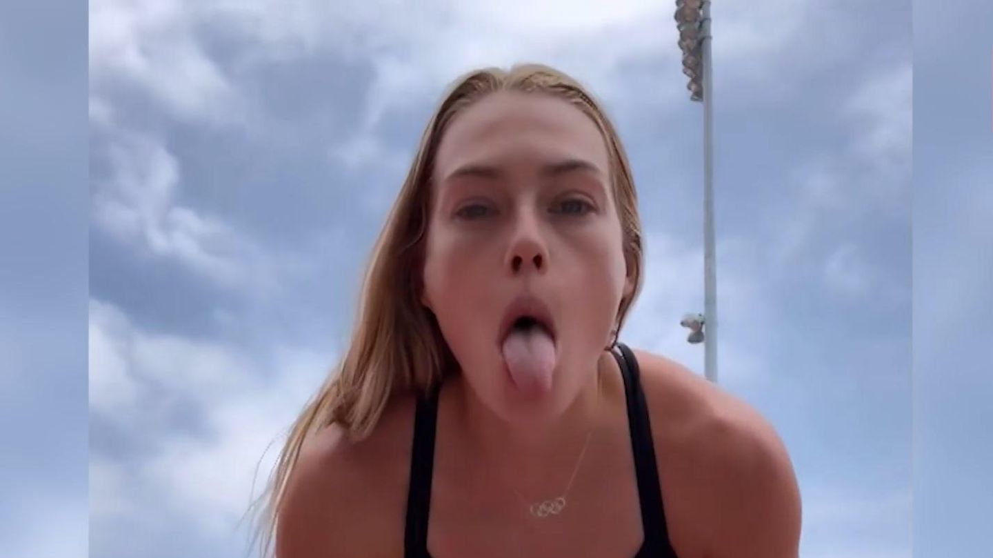 Mit einer Zungenübung möchte Leichtathletin Colleen Quigley ihre Hüfte und den Kiefer entspannen. Schmerztherapeut Dr. Lorenz Hotz erklärt, wie das funktionieren kann.