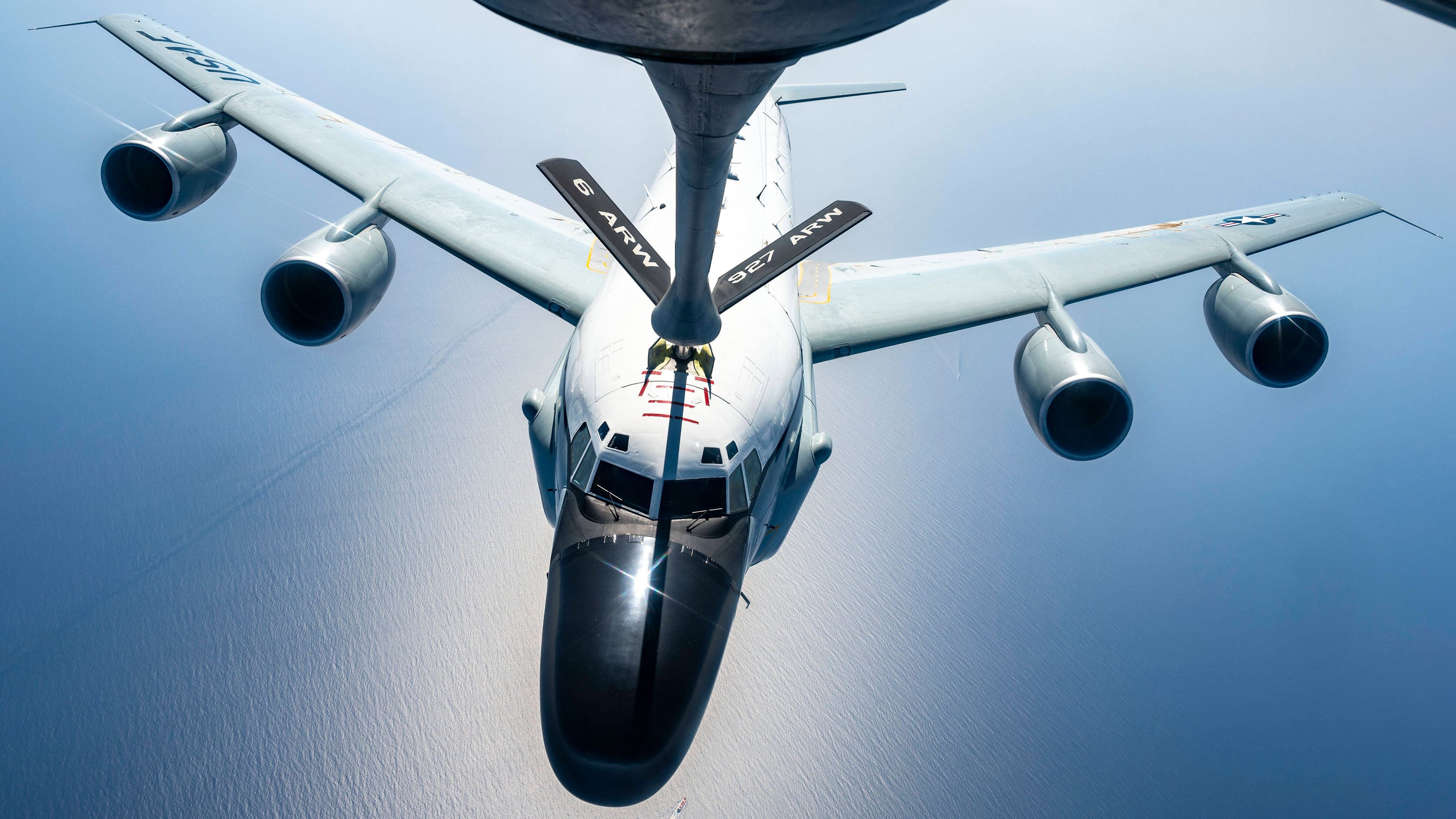 Kampfflugzeuge können nur wenige Stunden am Stück fliegen, bis ihr Tank leer ist. Um Einsätze zu verlängern, können sie allerdings spektakulär in der Luft betankt werden.