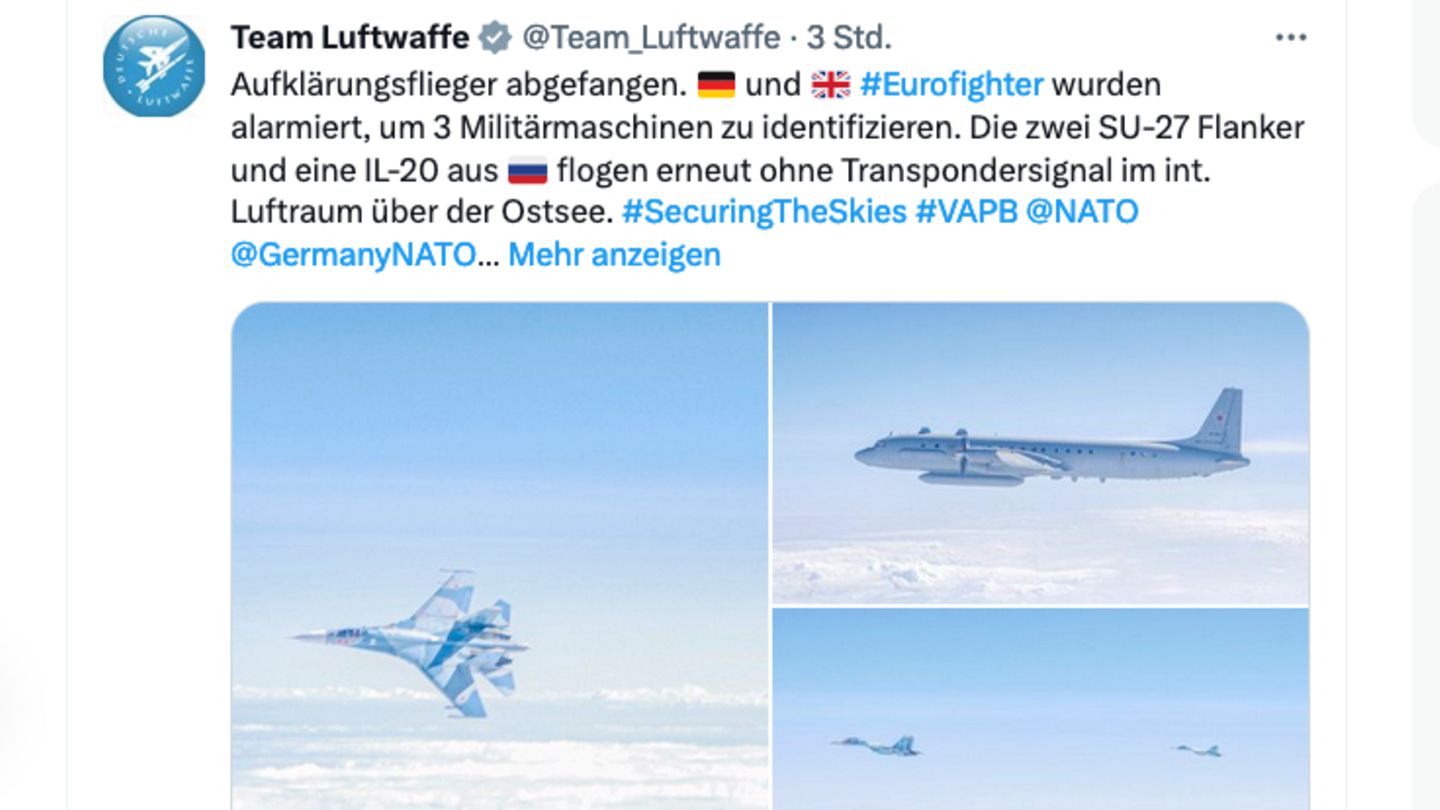 Drei russische Militärmaschinen flogen ohne Positionssignale über die Ostsee, dann stiegen deutsche und britische Jets auf. Die Luftwaffe veröffentlichte auch Fotos des Abfangmanövers.