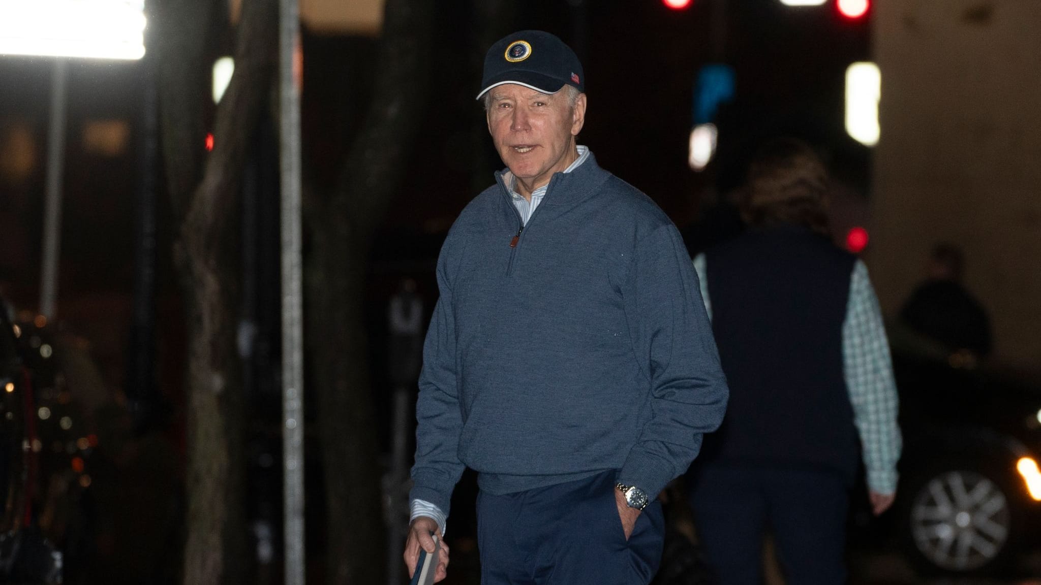 US-Präsident Joe Biden verlässt gerade ein Gebäude, als es kracht. Ein Fahrzeug rast gegen ein Auto seiner Sicherheitsbeamten.