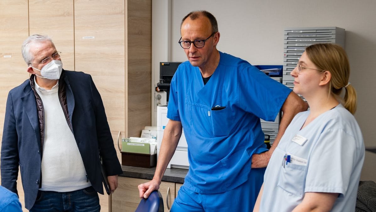 Im blauen Pfleger-Kittel steht Friedrich Merz auf einer Intensivstation und begleitet die Frühschicht. Auf Twitter sind nicht alle begeistert von der Aktion.