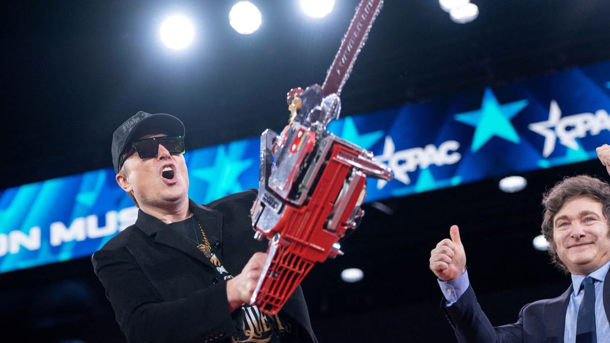 Elon Musk posiert bei einem Treffen mit dem argentinischen Präsidenten Milei mit einer Kettensäge. Hinter dem Auftritt steckt eine ernste Botschaft.